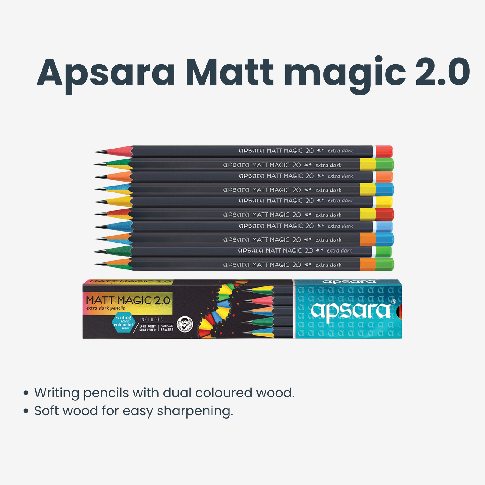• Writing pencils with dual coloured wood.