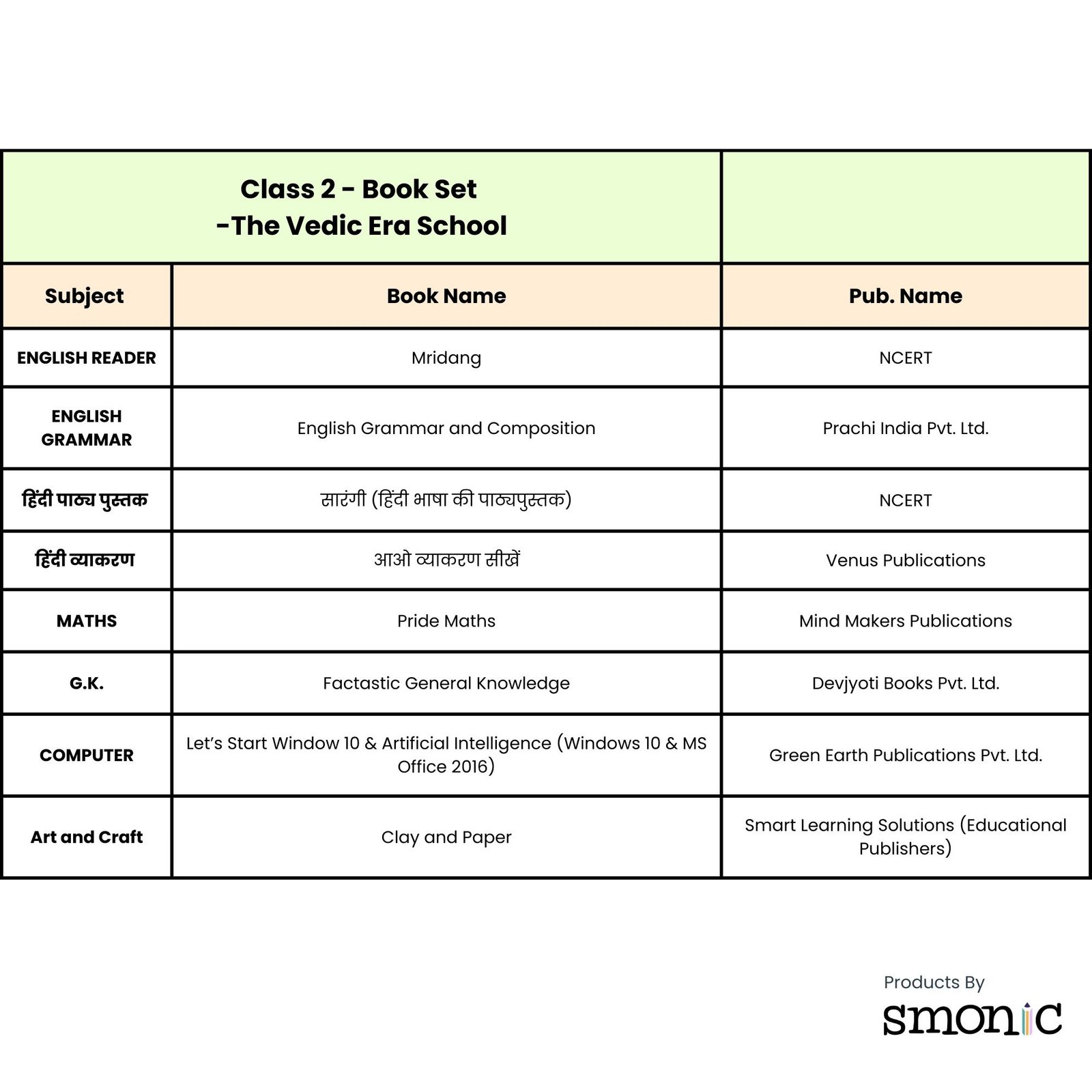 Class 2 | List Of Books | The Vedic Era School