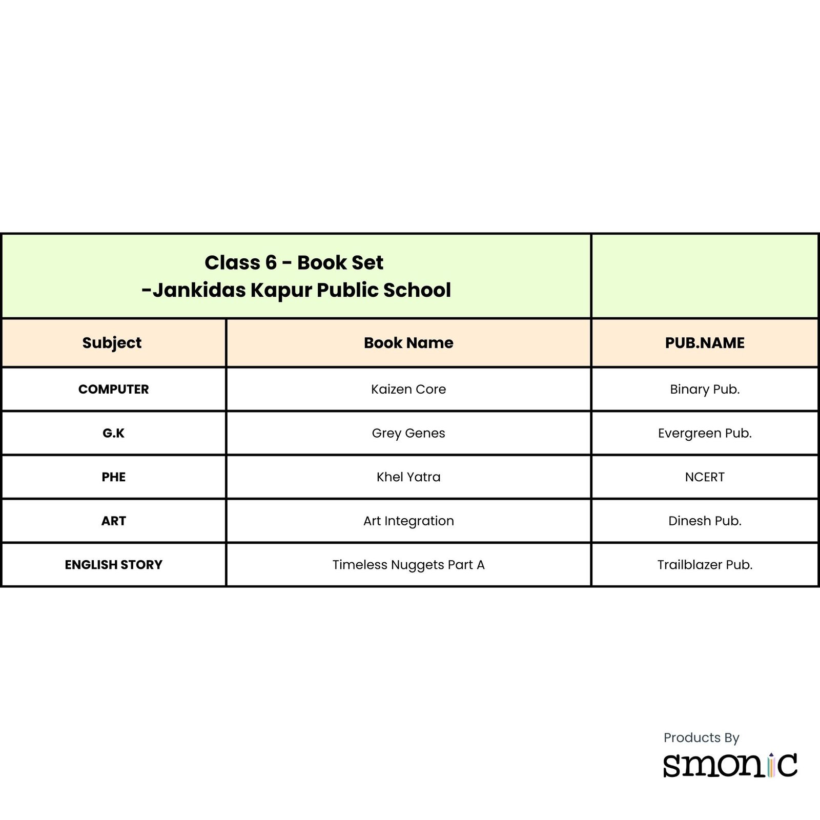 Class 6 Book List