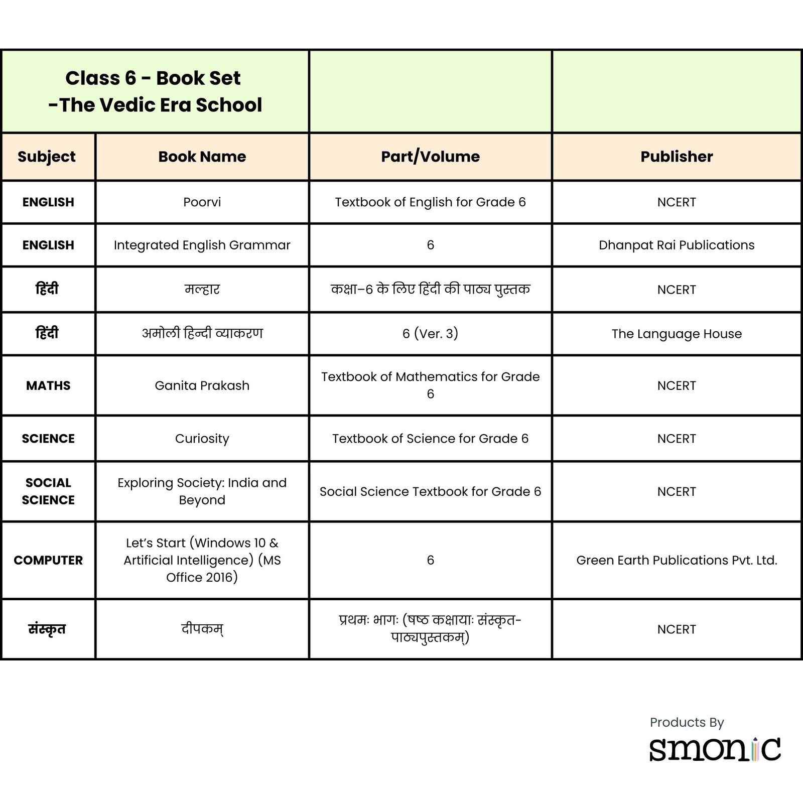 Class 6 | List Of Books | The Vedic Era School